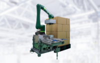 製品は通常、コンベアベルトやローラーコンベアを経由してロボットに供給されます。ロボットは指定された場所からパレットとスリップシート(パレットと荷物の間に敷く薄い板)を取り出すこともできます。
